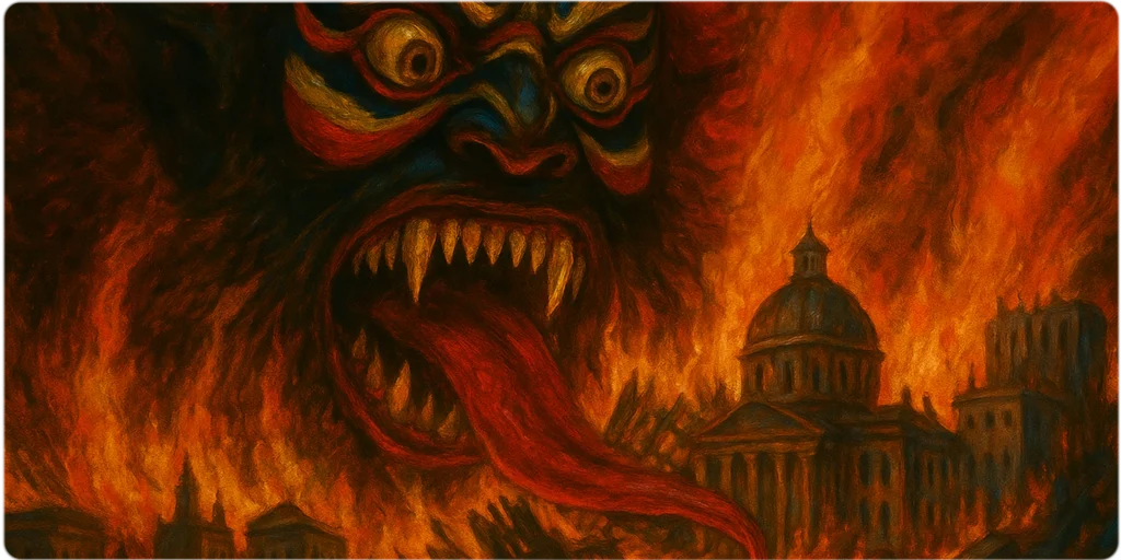 Kantara’s Agni Guliga serves as an agent of purification among Guliga’s many forms, when injustice has reached such depths that only its intensity of fire can cut through falsehood and corruption. It comes to life during times of crisis: when boundaries have been violated or promises broken or sacred pacts (between people, land, spirit) compromised through greed or deceit; its role is not only punishing but restoring, burning away what decayed so something new may emerge from decayed places!